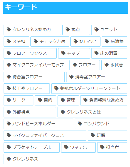 そんな時に遠回りや時間の無駄をして頂かないため、カテゴリー検索やタグ検索で清掃方法やクレンリネスノウハウを調べて頂けるようにも作っています。